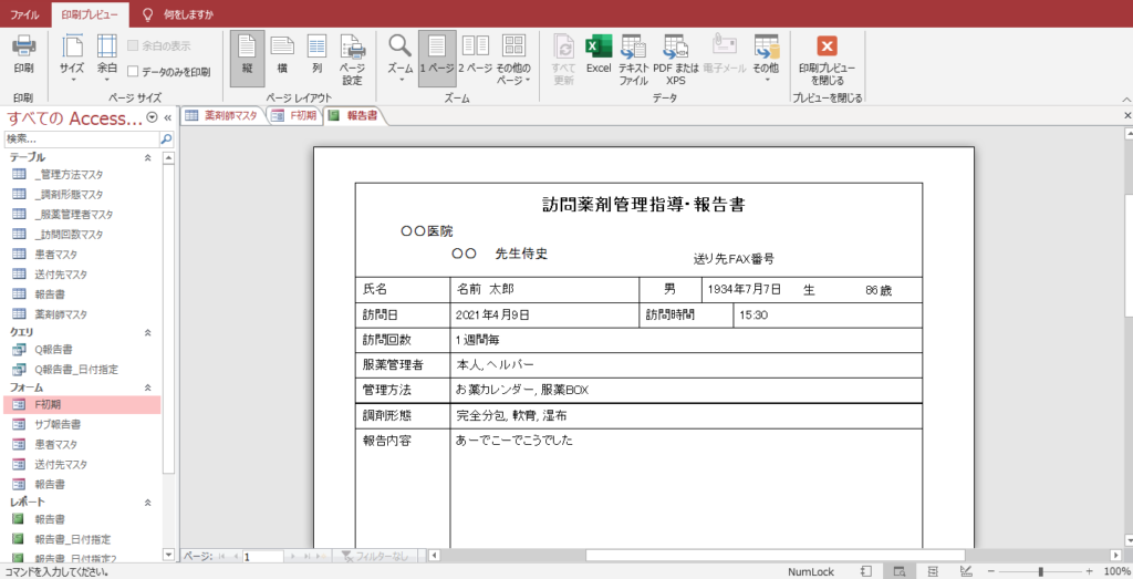 レセコンにも報告書作成機能はあったが、それを使用するには追加料金が必要であるため断念。