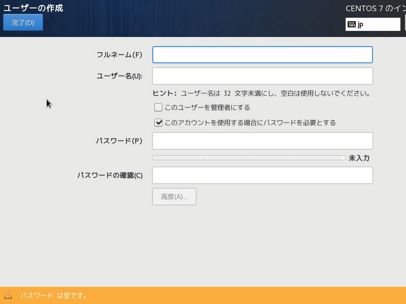 ユーザーの作成は後々できるが先に作成しておいた。