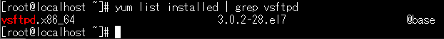 インストール後、もう一度yum list installed | grep vsftpdと入力してみるときちんとインストールされていることが確認できた。