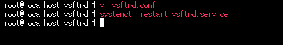 編集しただけでは設定が反映されないのでsystemctl restart vsftpd.serviceと入力して再起動させる。なにもエラーが返ってこなかったのでOKなのかな。