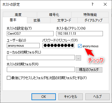 まだセキュリティ的にはスッカスカ状態であるが、ここでFFFTPというソフトを使って実際に接続してみる。先の設定で匿名ユーザーのログインを許可したのでそれでは入れるか確認してみる。