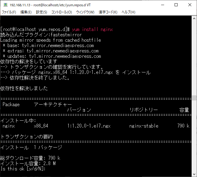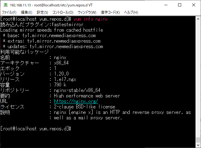 ひとまずnginxの詳細を確認。yum info nginxと入力してバージョンを確認。