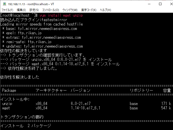 Apache編の時とは別のVMなので改めて wget と unzip をインストールする。