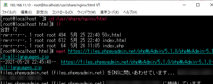 wgetとunzipがインストールできたらルートディレクトリに移動。cd/usr/share/nginx/html