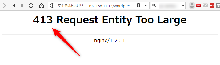 nginxでWordPressをインストールして起動確認まで前回おこなった。ここでWordPressのテーマをアップロードしようとしたら413のエラーが発生。