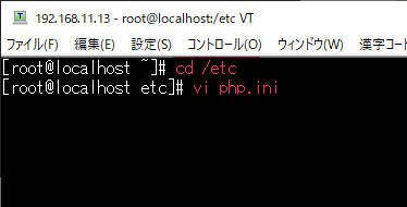 いわれた通りphp.iniファイルを変更する。cd /etcでphp.iniファイルのあるディレクトリに移動。