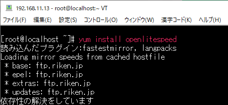 次に本丸であるopenlitespeedのインストール。yum install openlitespeedと入力してインストール