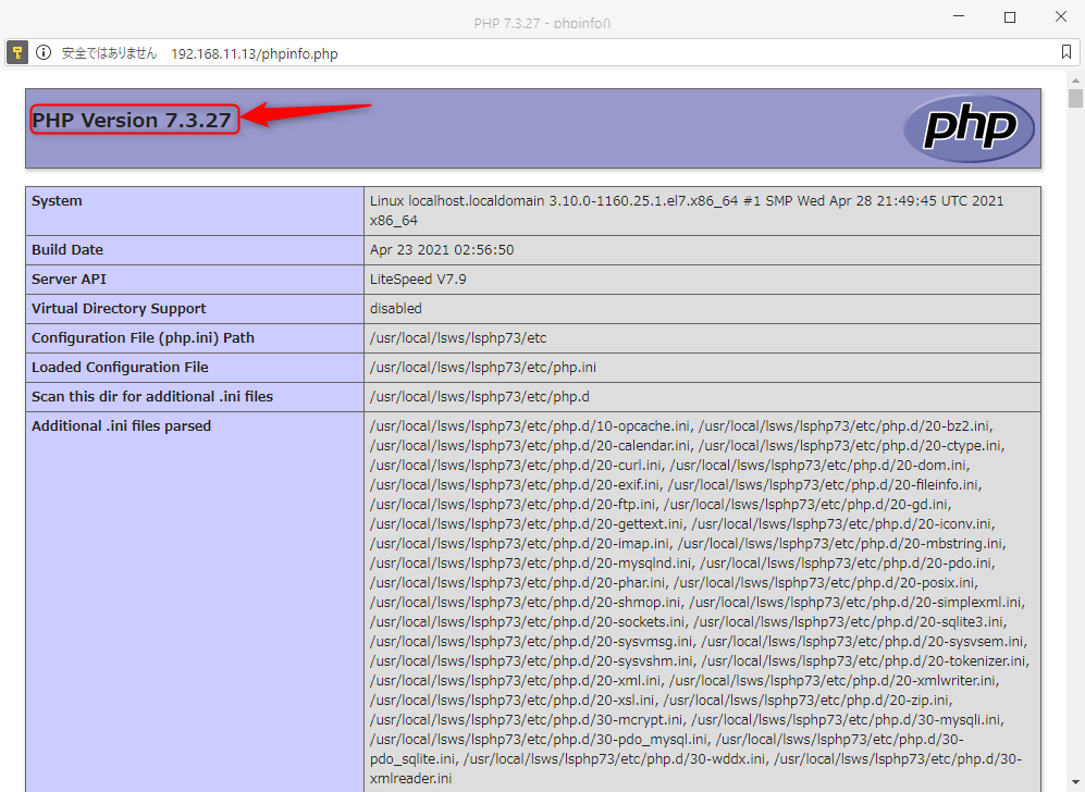 きちんとphpも動いているみたいですね。ちなみにバージョンは7.3でした。
