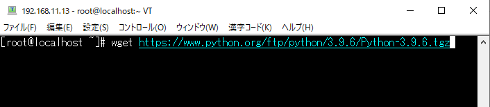 ダウンロードページから目的のURLをコピーして wget https://www.python.org/ftp/python/3.9.6/Python-3.9.6.tgzと入力してファイルをダウンロード。