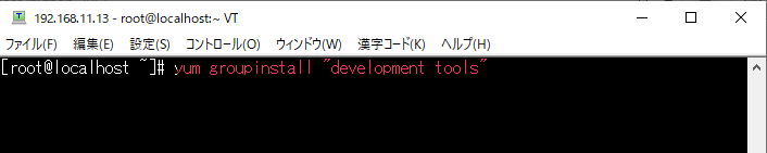 まずは必要なツールをインストール。yum groupinstall “development tools” と入力してDevelopment Toolsのグループをインストール。